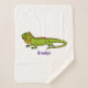 Happy green iguana cartoon illustration sherpa blanket