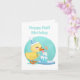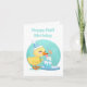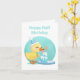 This adorable baby duck is taking a lick of a half birthday cake that has a half of the cake left with 1/2 cake decor.