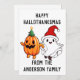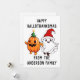 Cute Pumpkin and Ghost walking hand in hand towards HalloThanksMas. Personalise the text to sent out to all your beloved friends and family