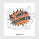 Happy Halloween comic style illustration with text design, bat and stars decoration on halftone background