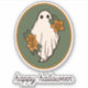 This cute sticker features a vintage inspired ghost with fall flowers on a background of matching green and orange. Personalise the text with your special message.
