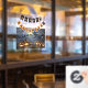 Happy Halloween Window Cling / Decal featuring bunting flags with text "Happy Halloween" and poster with flying witches, pumpkin lanterns.