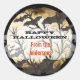 Happy Halloween Bats and Tree Burnt Parchment Classic Round Sticker