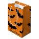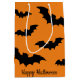 Happy Halloween black and orange spooky bat print Medium Gift Bag.