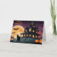 Happy Halloween Black Cat and Haunted House Holiday Card
