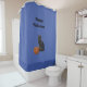 This shower curtain features photo cutouts of a black staring cat and an orange pumpkin on a blue background. The message, "Happy Halloween" is written in script across the top. You can change the message or even remove it if desired. You can also change the photo cutouts if you want to. If you need help with customising, please contact me.