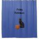 Happy Halloween Black Cat and Orange Pumpkin Blue Shower Curtain