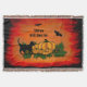 Happy Halloween , Black Cat , Bat and Pumpkin Throw Blanket