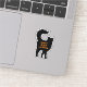 Apply this tiny vinyl sticker to your phone, laptop, and other surfaces. Featuring the silhouette of a scary fluffy black cat standing with its tail up, and the text Happy Catloween. Great for Halloween and cat lovers. Decorate your front door for Trick or Treat visitors. Decorate your walls, doors, refrigerator and other indoor surfaces for your Halloween party. Available in larger sizes for large surfaces such as suitcases and skateboards.