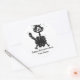The cartoon cat on these funny personalised Halloween stickers is black with grey stripes. It is jumping up in the air and looking scared.