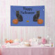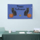 Happy Halloween Black Cats Pumpkins on Blue Banner