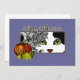 Green-eyed black cat peeking behind an Art Nouveau flourish complete with pumpkin accent and Halloween greeting. Artist, Margaret Loftin Whiting, classic style.