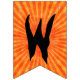 These Halloween party bunting flags say, "Happy Halloween!" in creepy black text on an orange ray background. On the flag between the words, there is a silhouette of the headless horseman on a horse and holding up a pumpkin head. Decorate your Halloween party with these bold bunting flags.