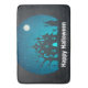 At the heart of this haunting bath mat is a creepy haunted house, its intricate details and foreboding silhouette capturing the essence of the supernatural. Against the backdrop of the vivid blue ombre circle and deep black background, the design comes alive, immersing you in a realm of ghostly tales. A barren tree stretches its gnarled branches towards the moonlit sky, while a menacing hooded figure lurks nearby, adding an extra layer of suspense to the scene.