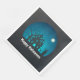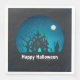 At the centre of these chilling napkins is a creepy haunted house, its intricate details and foreboding silhouette capturing the essence of the supernatural. Against the backdrop of the vivid blue ombre circle and deep black background, the design comes to life, transporting your guests to a realm of ghostly tales. A barren tree stretches its twisted branches towards the moonlit sky, while a menacing hooded figure lurks nearby, leaving an air of suspense in their wake.
