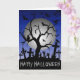 Halloween illustration with tree, bats, owl and gravestone decoration at full moon