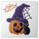 Happy Halloween Carved Pumpkin with Black Cat and Tile