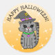 Happy Halloween Cat in Witch's Hat Classic Round Sticker