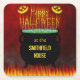 Personalise these pulpboard paper Halloween coasters with your family name. The coasters feature a black cauldron that's boiling and bubbling over, filled with a green potion. It rests on a reddish-orange grungy background with flames shooting up from the bottom. "Happy Halloween" is done in glowing orange text. The "at the [your family name]" text is easily customisable through the templates. This scary, spooky coaster set is perfect for your Halloween party.