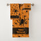 Happy Halloween Creepy Crawly Spiders Orange BG Bath Towel Set
