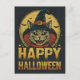 Happy Halloween Creepy Witch Cat Holiday Postcard