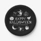 Happy Halloween custom name black white spooky Paper Plate