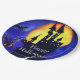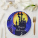 Halloween castle , enchanted tree and bats hand painted illustration. Happy Halloween party paper plates.