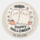 Adorable sticker featuring two cute ghosts with pumpkins, perfect for party decorations or gift packaging.