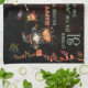 This adorable Halloween Monsters, Welcome to a Haunted House Kitchen towel is great to spice up your Kitchen during the Halloween Holiday, a perfect piece to decorate your kitchen or dining room. This design features little monsters on black background with ornamental leaves and pumpkins . You can easily customise all text. Check the collection for matching items.