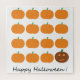 A cute patch of festive orange pumpkins are joined by a happy little holiday jack o' lantern at the end of the line. Happy Halloween!