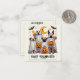 This fun Happy Halloween holiday note card features four cute dogs dressed in ghost costumes and carrying jack-o-lanterns. Personalise with your choice of special text on the front and back.