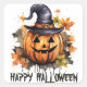 Happy Halloween Evil Grinning Pumpkin Art Square Sticker