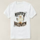 Celebrate Halloween in a cool retro style with this man's shirt. The design, inspired by classic cartoons, features a nice ghost dressed in a witch hat and holding a broom, ready for the party. Accompanied by a pumpkin and the "Happy Halloween" salute in a vintage and bold typography, this T-shirt is perfect for those who appreciate a fun and nostalgic aesthetic. Ideal for parties or to show your festive spirit with a touch of old school style.