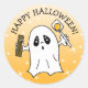 Happy Halloween Ghost with Candy Bar Classic Round Sticker