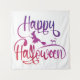 Happy Halloween gradient flying witch cat Tapestry