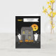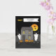 A simple illustration of a haunted house at night, with ghosts, bats, pumpkins and bones. There is a plane flying over the house that has a banner behind it that says 'Happy Halloween to a very special half sister'.