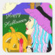 Happy Halloween Hand drawn Witch and Full Moon Square Sticker