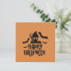 Happy Halloween haunted house spooky bat orange Holiday Card