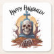 Happy Halloween Head Stone And Skeleton Square Paper Coaster