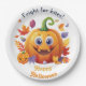Happy Halloween Jack-O-Lantern On Pile Of Leaves Paper Plate