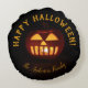 Custom Halloween Decor Happy Halloween Jack O Lantern Orange Pumpkin Funny Scary Spooky Round Throw Pillow, you can change all text
