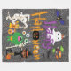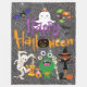 Happy Halloween Kids Cute and Spooky design that is loaded with colour and tons of ghoul! From a cute ghost to a Dracula bat and pumpkins with witches, mummies, black cats, dancing skeletons a scare crow and even candy to complete the scene! All over a creepy spider web background!