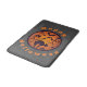 Happy Halloween circle badge with jack-o'-lantern black cat and bats typography