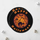 Happy Halloween circle badge with jack-o'-lantern black cat and bats typography