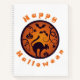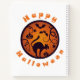 Happy Halloween circle badge with jack-o'-lantern black cat and bats typography