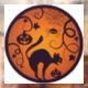 Happy Halloween circle badge with jack-o'-lantern black cat and bats typography