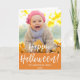 The Happy Halloween Family Photo Card uses a hand written white script typography. The name, year and photo can be replaced on the Halloween Photo Card.