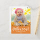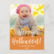 The Happy Halloween Family Photo Card uses a hand written white script typography. The name, year and photo can be replaced on the Halloween Photo Card.