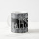 Happy Halloween mug, with a scary them diamond background in grey and black.