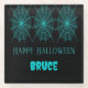Get into the spooky spirit with the "Happy Halloween" neon blue spiderweb design against a deep black background. This electrifying pattern adds a modern twist to Halloween decor, casting an eerie yet captivating glow for a hauntingly stylish celebration.